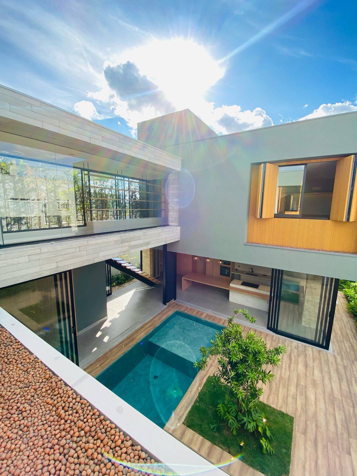 Com 338 m² de terreno e 304 m² de área construída, o imóvel foi projetado para oferecer funcionalidade e sofisticação em perfeita harmonia.