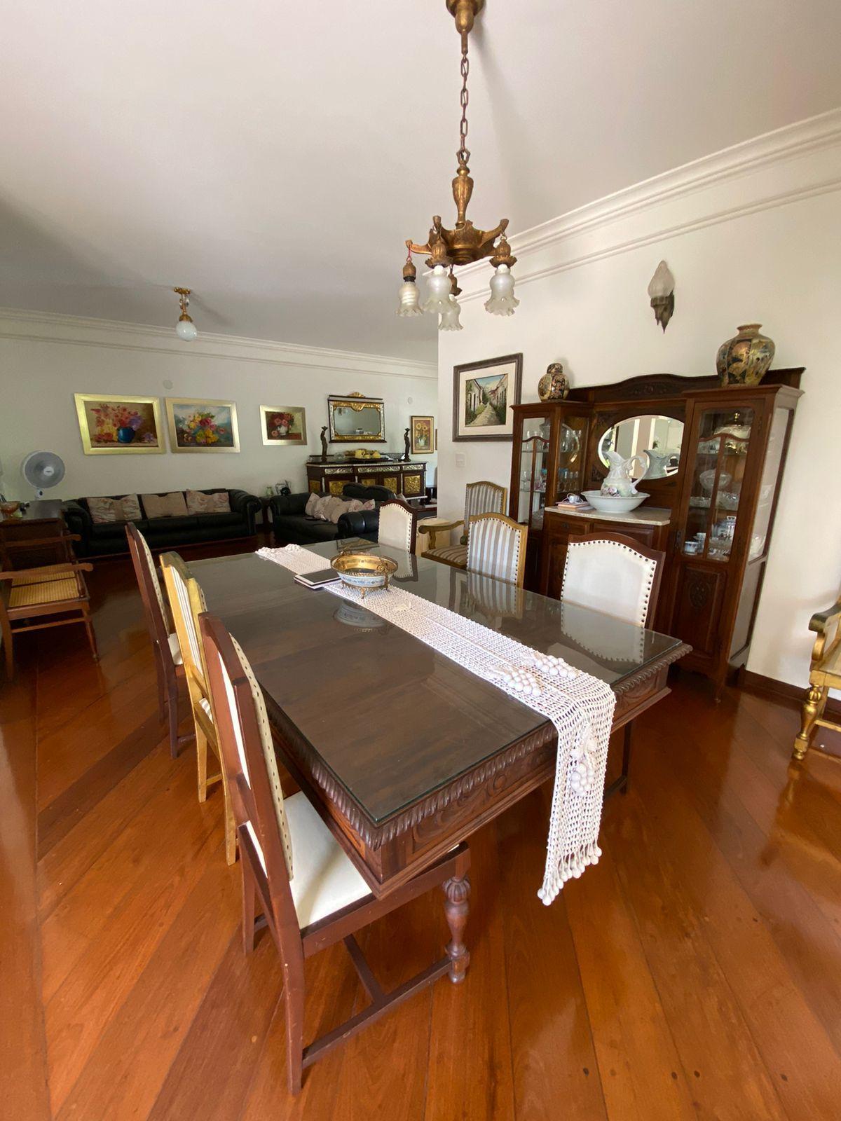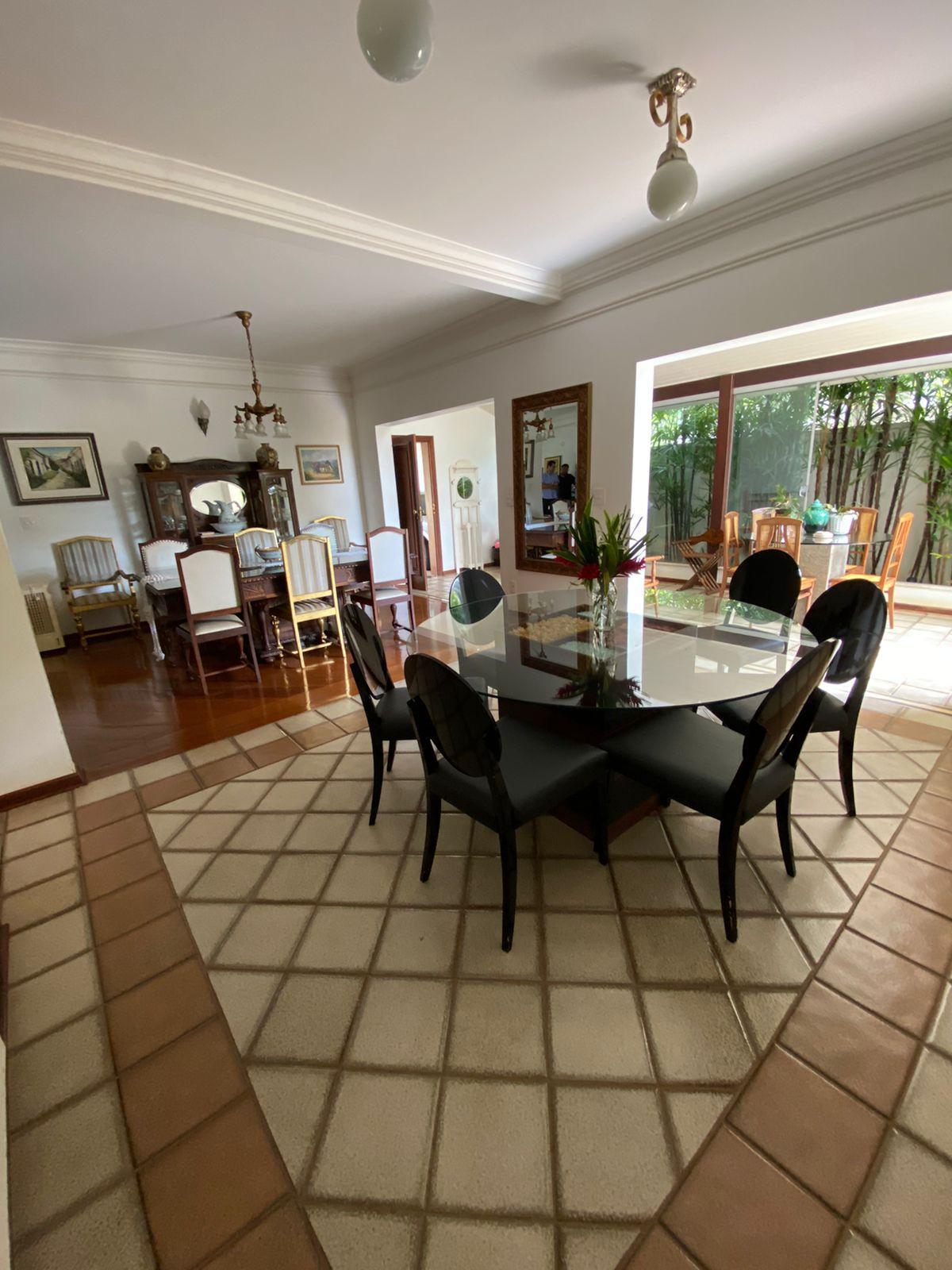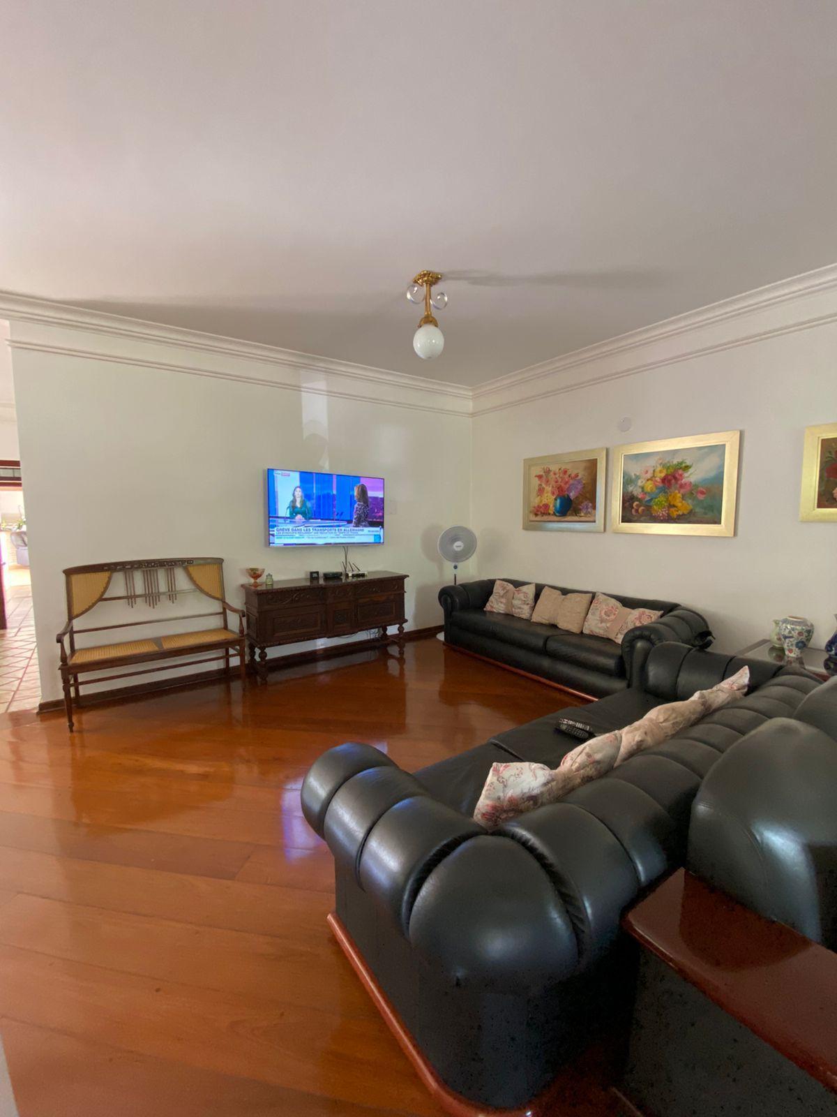 O imóvel tem 4 quartos, sendo 2 suítes, possui 5 banheiros, 3 salas e 3 vagas de garagem.