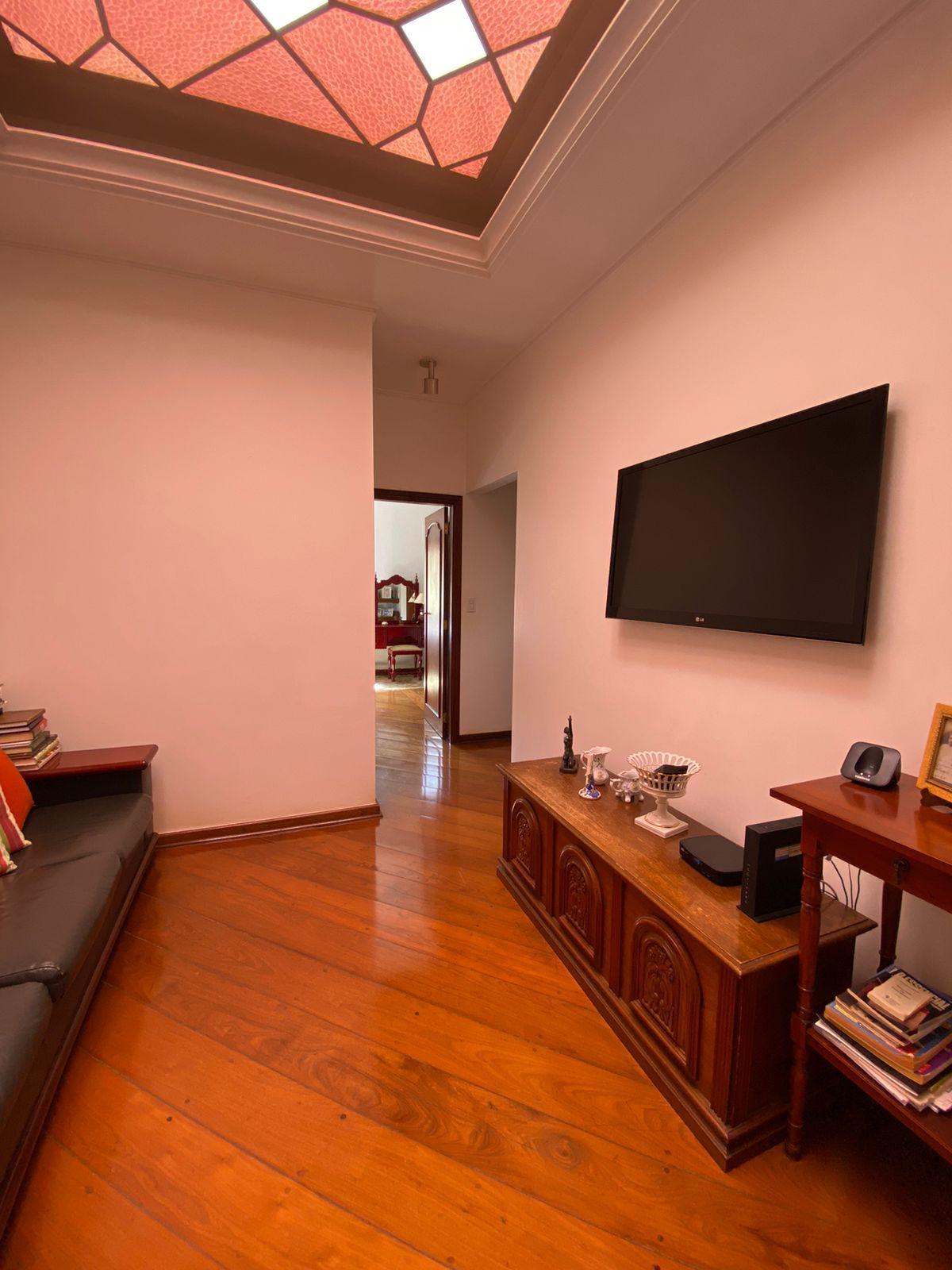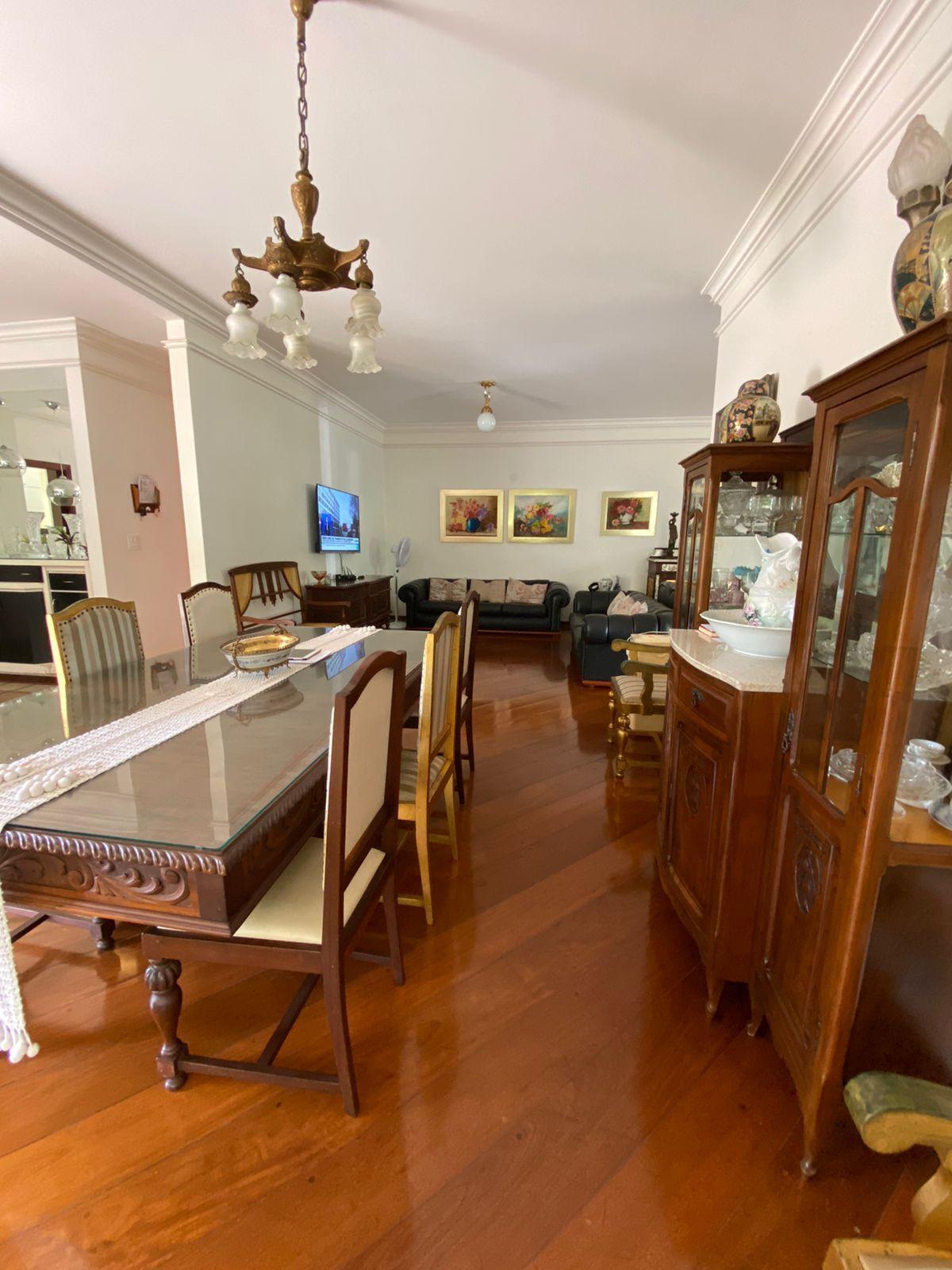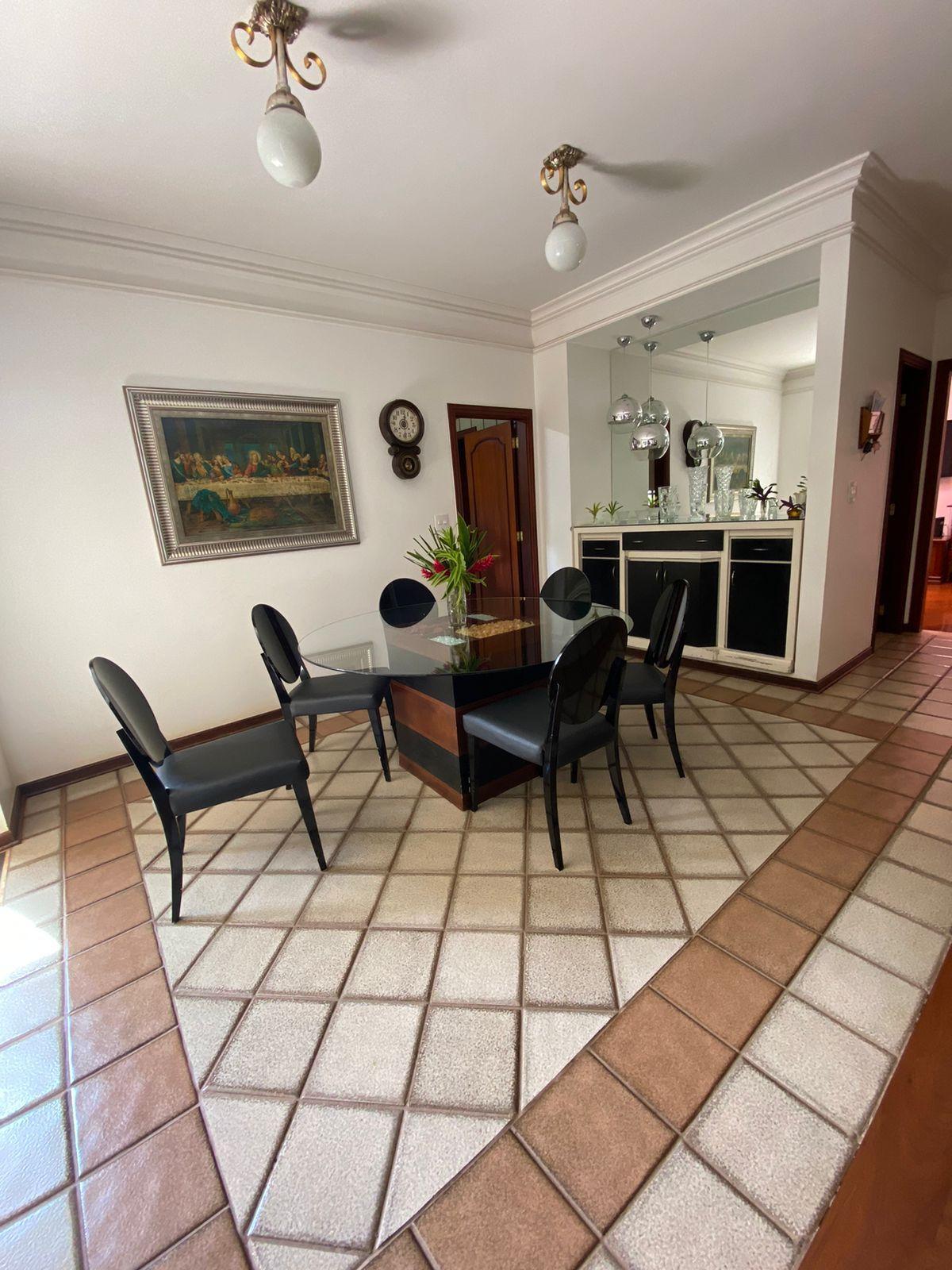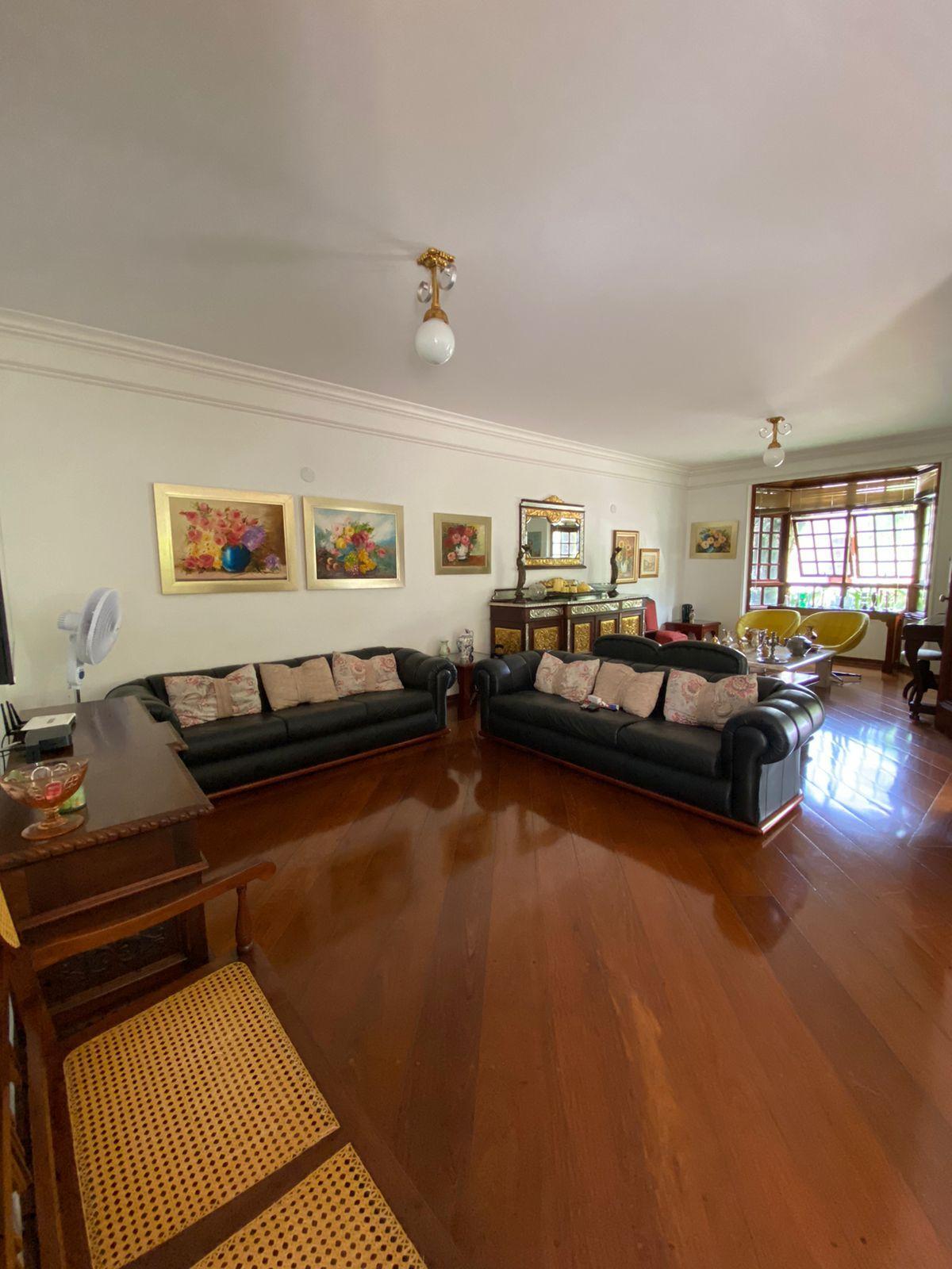 O imóvel tem 4 quartos, sendo 2 suítes, possui 5 banheiros, 3 salas e 3 vagas de garagem.
